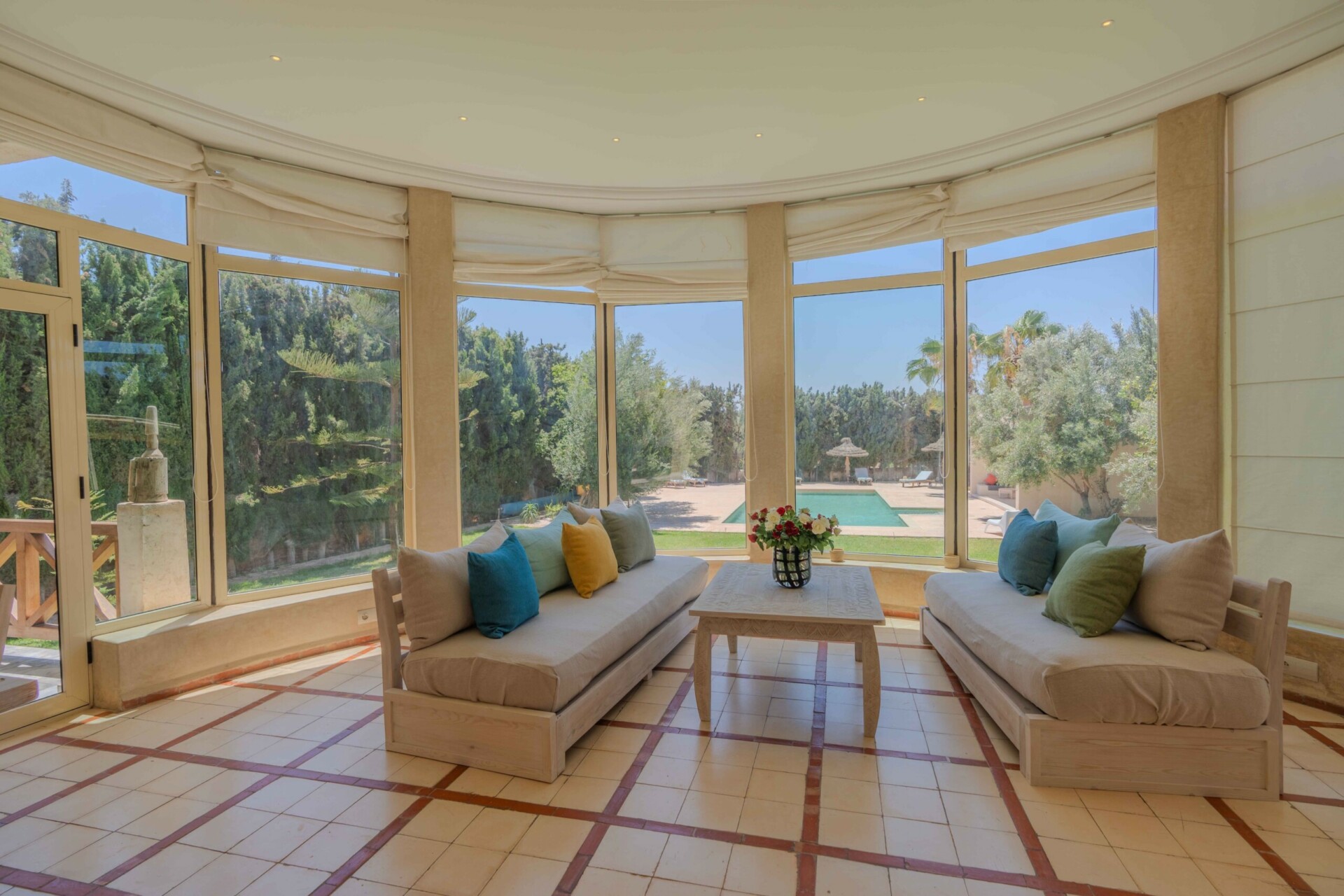 Les espaces extérieurs invitent à la détente totale, autour d’une grande piscine et d’un espace lounge aménagé au bord de l’eau. Les jardins spacieux sont parfaits pour organiser un barbecue, partager un repas en plein air ou simplement profiter d’une intimité absolue. Pour un séjour en toute sérénité, une cuisinière privée prépare de délicieux plats marocains authentiques, tandis qu’un service de ménage quotidien veille à votre confort.